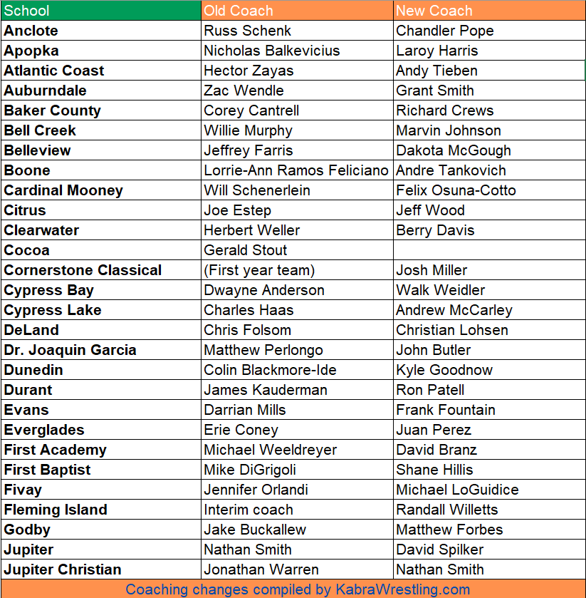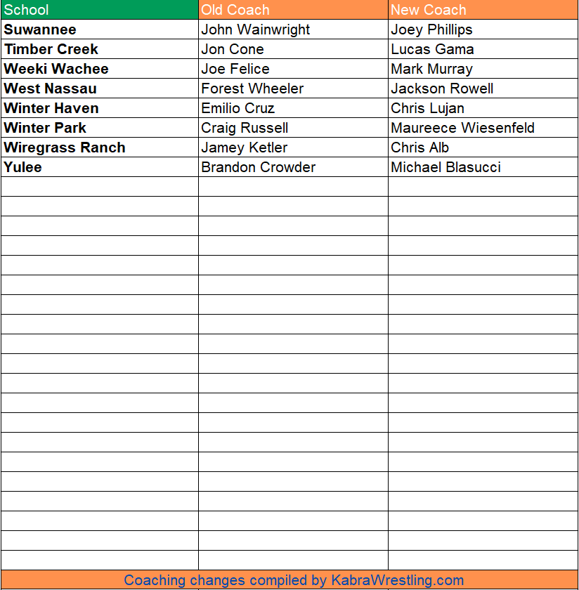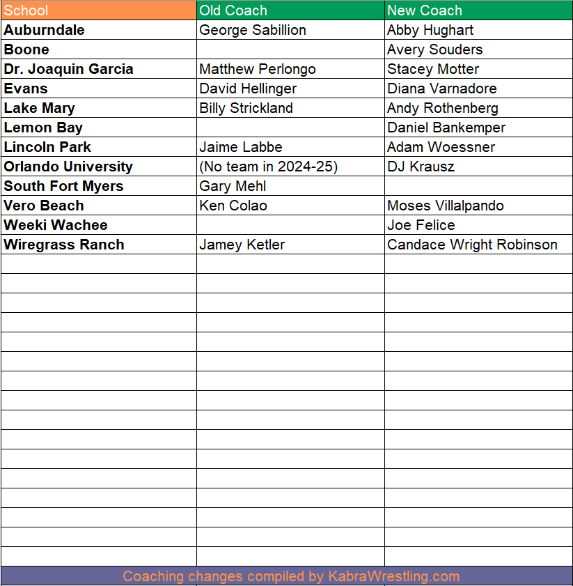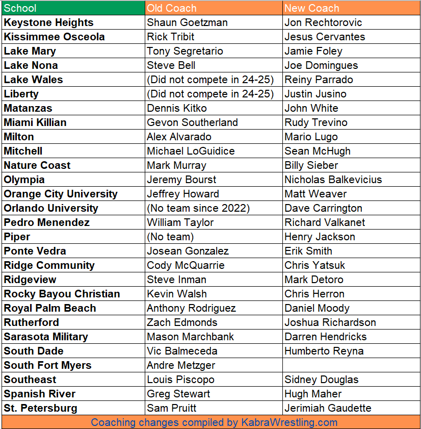BY BRANT PARSONS — We are tracking all of the coaching changes this offseason ahead of the 2025-2026 Florida high school wrestling season.